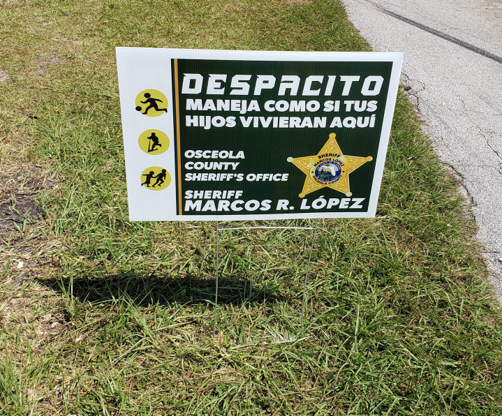 The county has installed new speed and traffic trackers on the roads leading to the intersection of Laruel and San Migual. See the new picture below.
