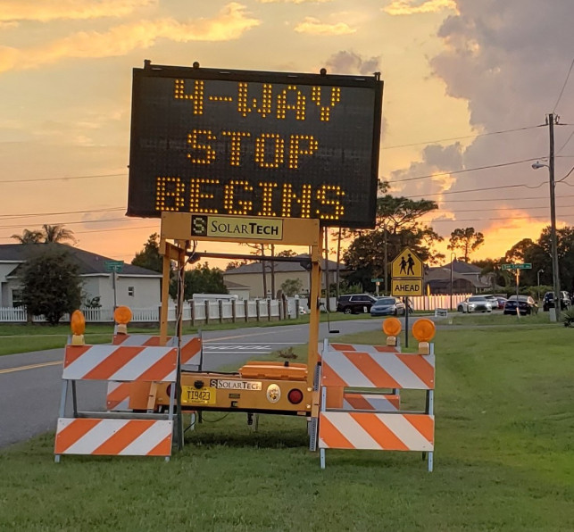 The county has installed the new 4-way stop at the intersection today. All traffic must com to a full stop before proceeding. As of now, the speed and traffic trackers are still in place. See new pictures below.